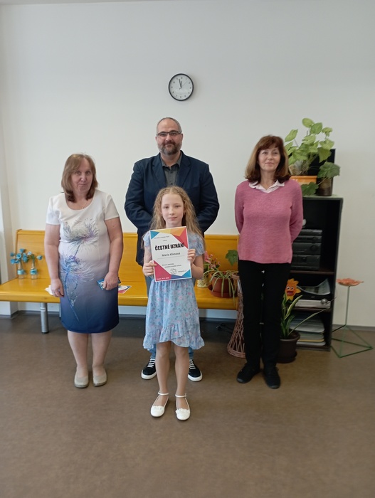 Zvláštního ocenění dosáhla Marie Klímová, která si z okresního kola odnesla čestné uznání. K jejímu úspěchu jí srdečně gratulujeme a všem zúčastněným děkujeme za skvělou reprezentaci školy.